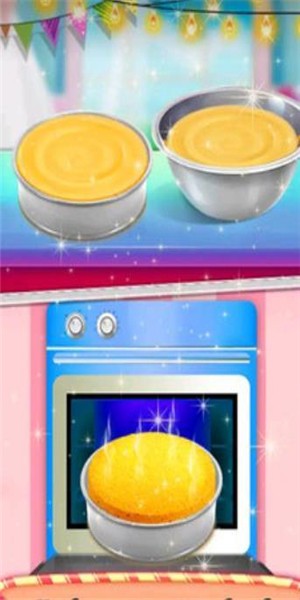 游戏的背景是在五彩的蛋糕房中,玩家能够在游戏中制作不同形状大小的蛋糕