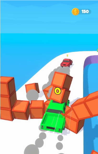 2、游戏中车子是自动在道路上前进的,在移动的时候需要通过超多的箱子来到游戏终点