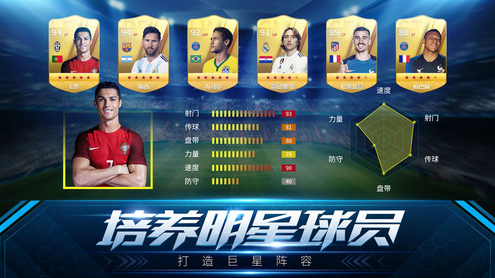 3、丰富的球员类型,不同球员的身体素质不同,还能通过训练强化;