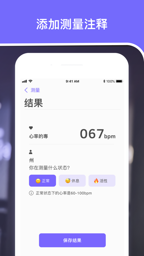 《脉搏心率检测》是一款非常专业的脉搏心跳检测类应用软件,界面简约,操作简单易上手,主要通过手机相机来检测个人的心跳频率情况,需要的朋友快来下载吧!