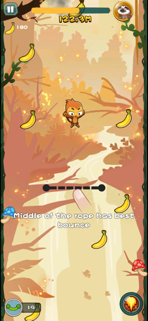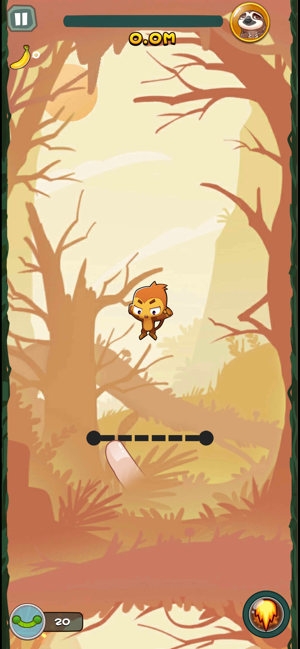 按住滑动手指,松手即可为猴子制作一根弹力绳,利用该绳子让猴子跳起来。