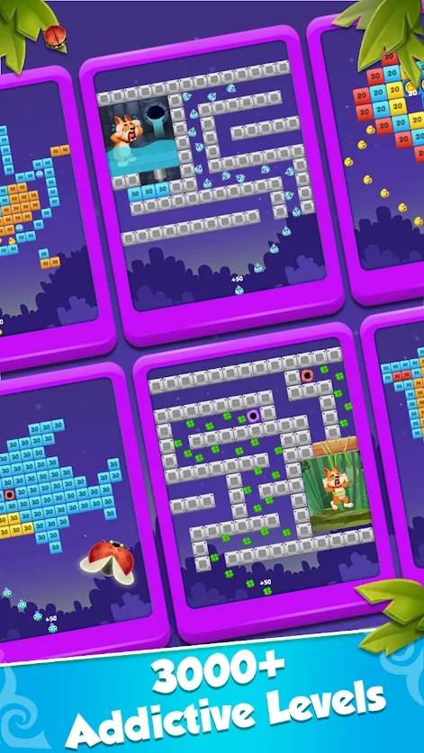 2、游戏玩家可以在超多的关卡中挑战,不断的发射小球可以更好的帮助自己撞击砖块
