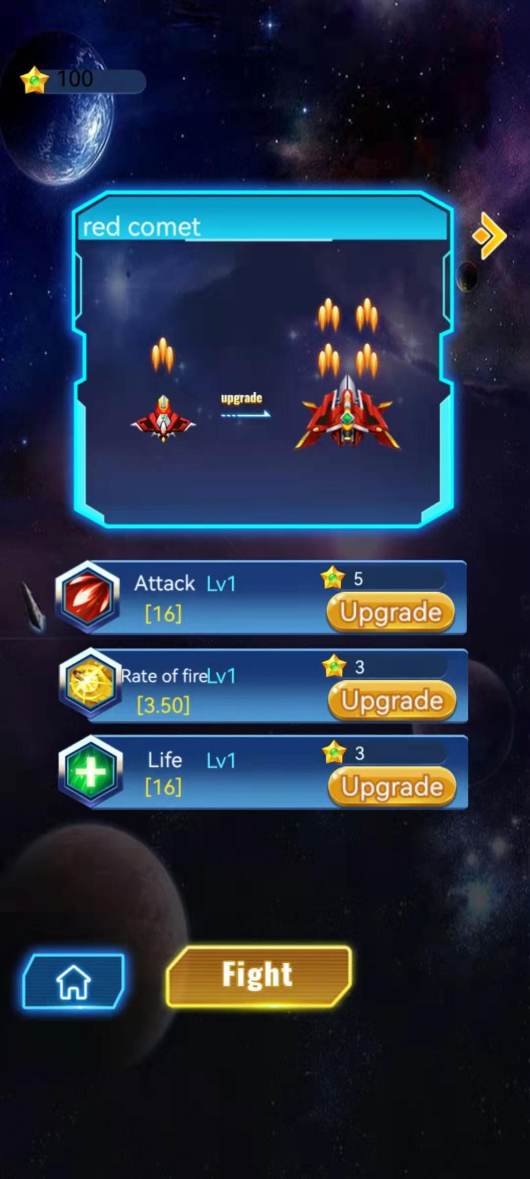 3、游戏战机的属性会慢慢的提高,需要花费超多的资金,不断的在关卡挑战得到资金。