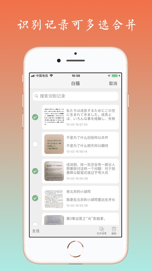 手指流畅顺滑,即可分块选择需要的文字,想要哪段点哪段;识别结果可编辑且选择复制到各种app中使用。