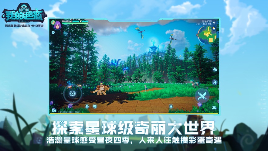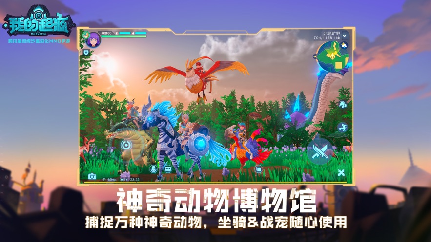 2、跨时代进化的创新设定,各时代特色宠物可自由驯养,从远古时代到赛博朋克的世界发展进程由玩家创造;
