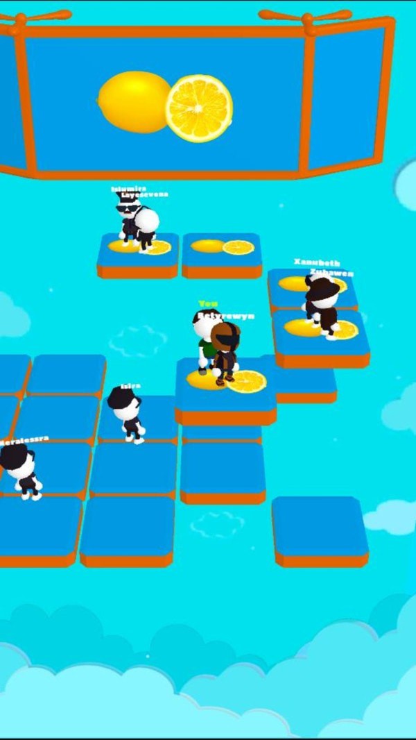 游戏的关卡会有很多的玩家同时进入关卡竞技,玩家需要尽量不停的移动正确最后一个掉落