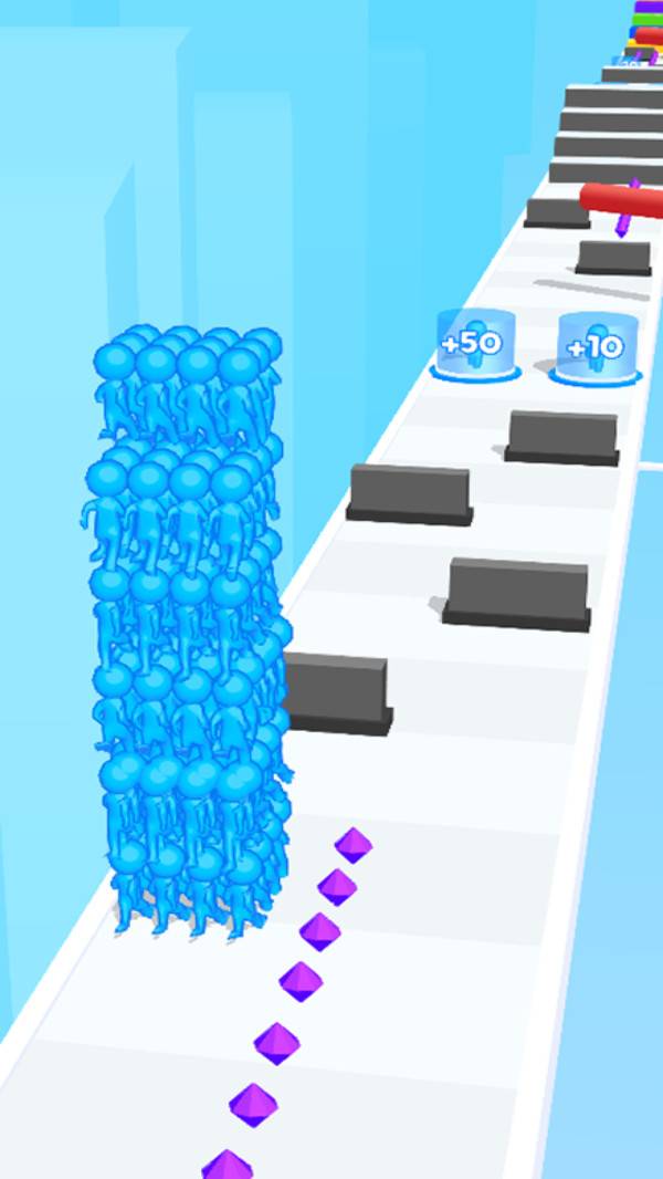 一款休闲游戏,来到关卡的道路上面不断的躲避前进,小人的数量会不断的增加,但是为了提高难度,关卡里面还添加了很多的障碍,玩家没有及时的躲避障碍来到游戏的终点,快点下载游戏吧!