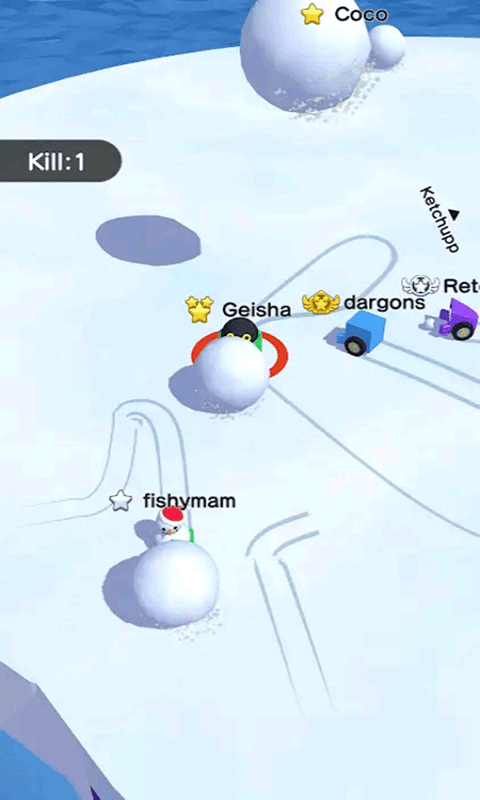1、游戏地图中玩家可以使用的道具只有雪球,不断的收集提高雪球的攻击力