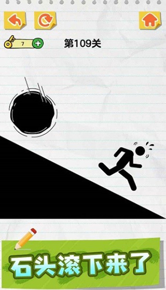 2、以简洁的火柴人角色为主题,让玩家通过绘制线条来创造奇迹,时间限制也增加了挑战性,让玩家必须在有限的时间内完成关卡任务。