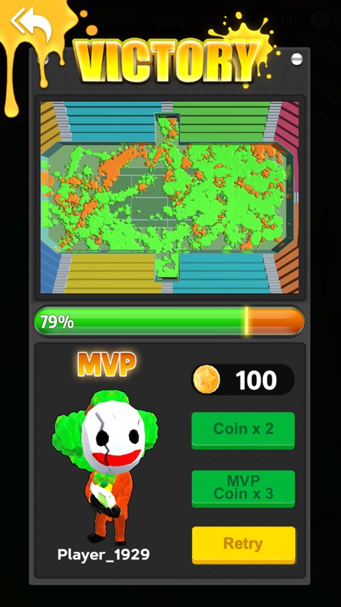 游戏中玩家随意的进入地图开始涂色,玩家发射颜料将地盘占领最后能够得到奖励