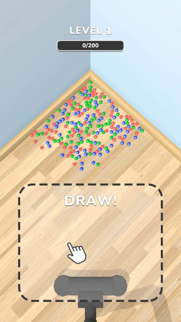 玩家在游戏中画出扫帚将关卡里面的小球全部收集,每一关玩家都需要画出形状不同的扫帚完成收集的任务,会有很多的小球在地面上等待玩家的收集,快点下载游戏吧!