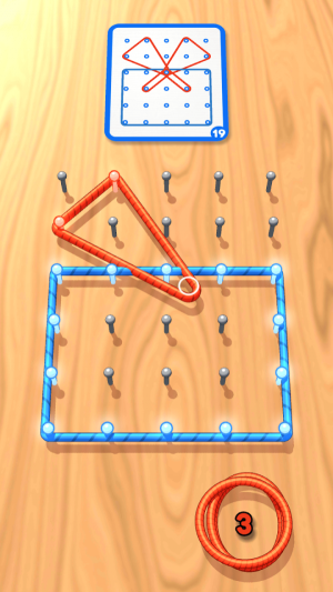 4、游戏的玩法是比较简单的,玩家用手指移动绳索用钉子绳索摆成不同的样子完成挑战