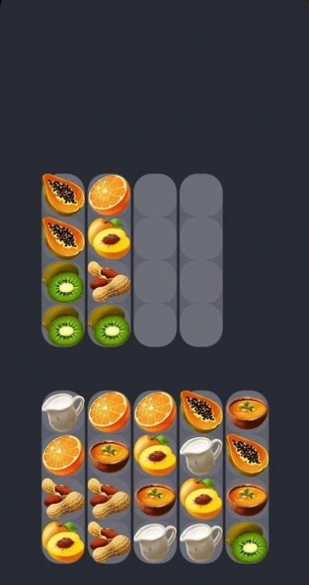 4、游戏中手指不断的移动关卡中的所有的蔬菜水果,通过不断的移动完成分类哦。