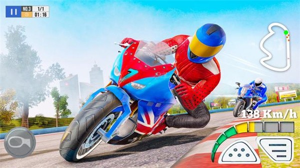1、玩家可以选择不同类型的摩托车进行驾驶,每辆车都具备特殊属性,增添了游戏的可玩性,高品质的画面表现,逼真的场景和细腻的细节。