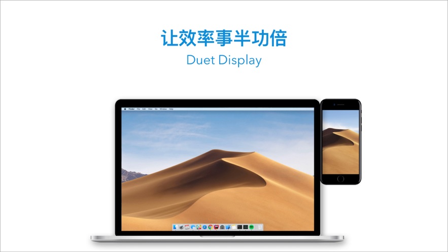 《Duet Display》是一款非常专业的软件,能够帮助用户把mac的屏幕分享到移动设备的Mac软件,Duet Display for mac是地球上首个用 USB 线,让 iPhone, iPad 成为 Mac 扩展屏幕的应用程序,只要你有一条 lightning 或 30针 的 USB 线就能使用 Duet。