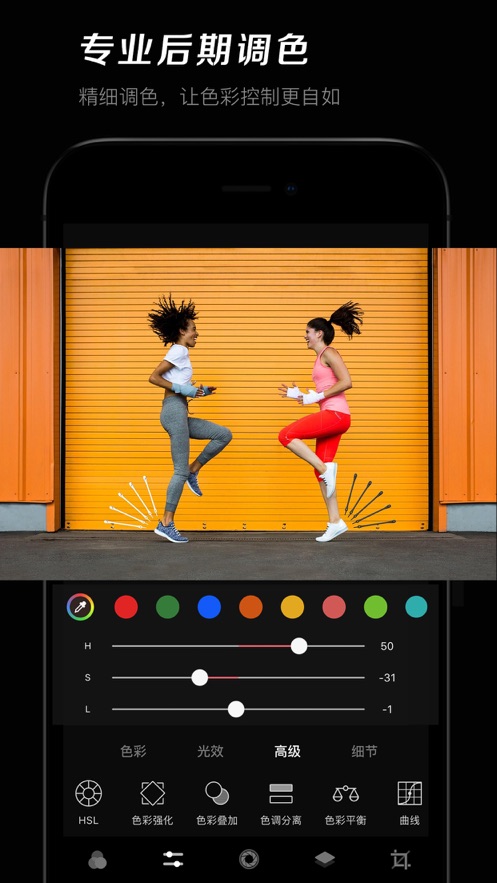 高级调整:曲线,色阶(直方图),色调,阴影色调和高光色调,色调调整均支持自定义选取颜色