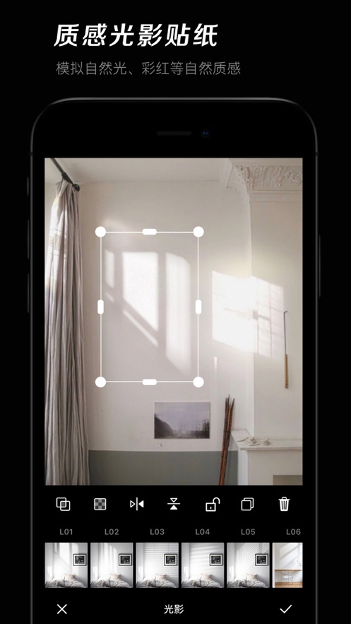 你可以自由灵活地编辑贴纸,旋转,改变尺寸,缩放,移动。还可以更改混合模式,透明度,水平翻转,垂直翻转,锁定贴纸,复制贴纸,删除贴纸