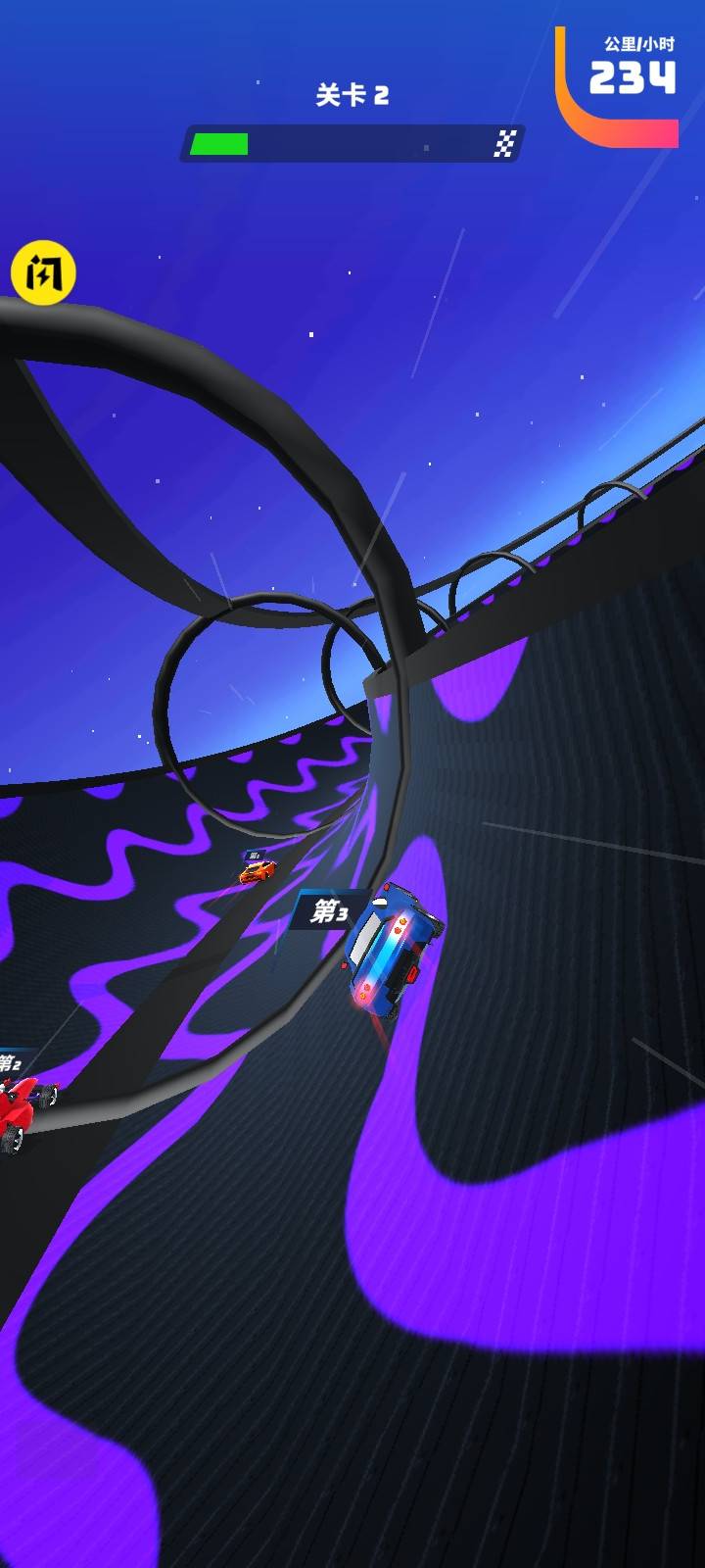 2、游戏玩家单手就能在竖屏的画面中驾驶赛车挑战,很多关卡可以挑战。
