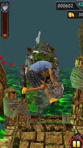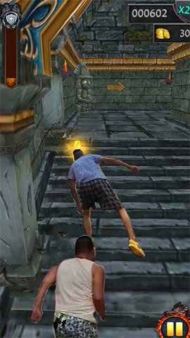 2、游戏角色的身后有人在追赶玩家,玩家需要帮助角色不断的前进避开前方障碍。
