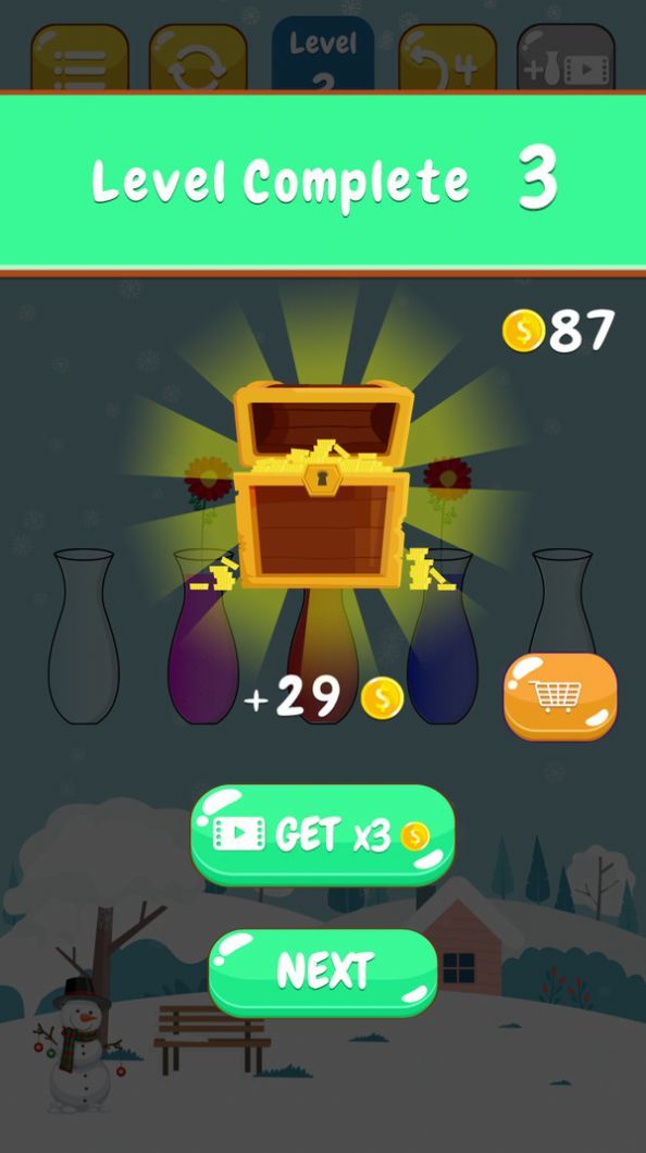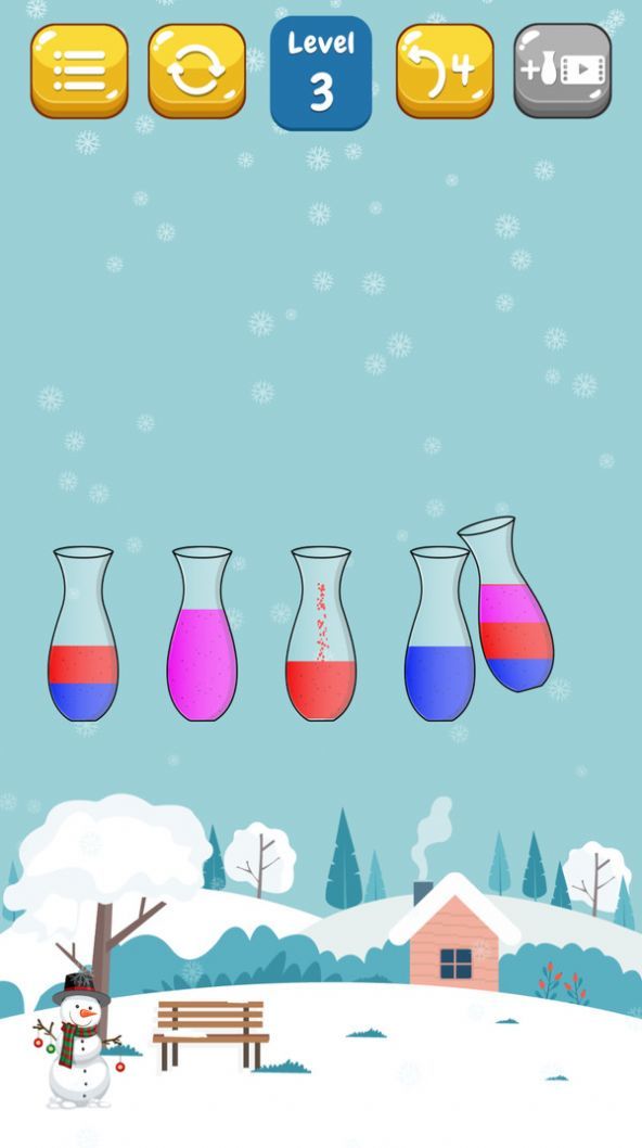 4、游戏的目标是将所有相同颜色的沙子转移到同一个瓶子中,这需要玩家耐心和策略。