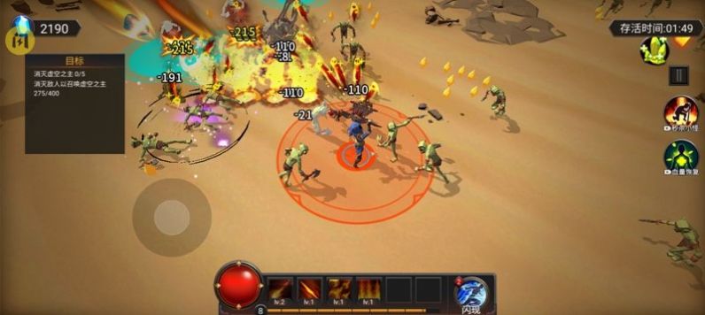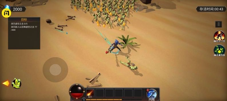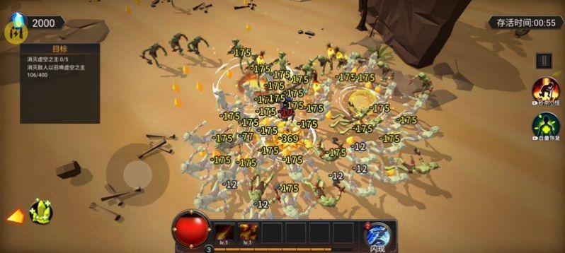 2、游戏敌人会在场景围攻玩家,为了生存下去需要不断的消灭敌人继续生存。