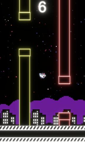 霓虹飞行是款休闲闯关游戏,玩家能够在关卡中看到很多柱子,这些柱子的长短不同组成的障碍也不同,需要从两根柱子的终点帮助小鸟安全的移动,要小心的帮助小鸟跳跃安全穿越前进,快点下载游戏吧!