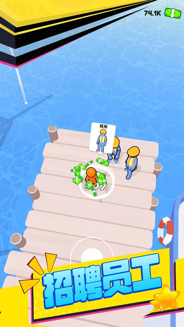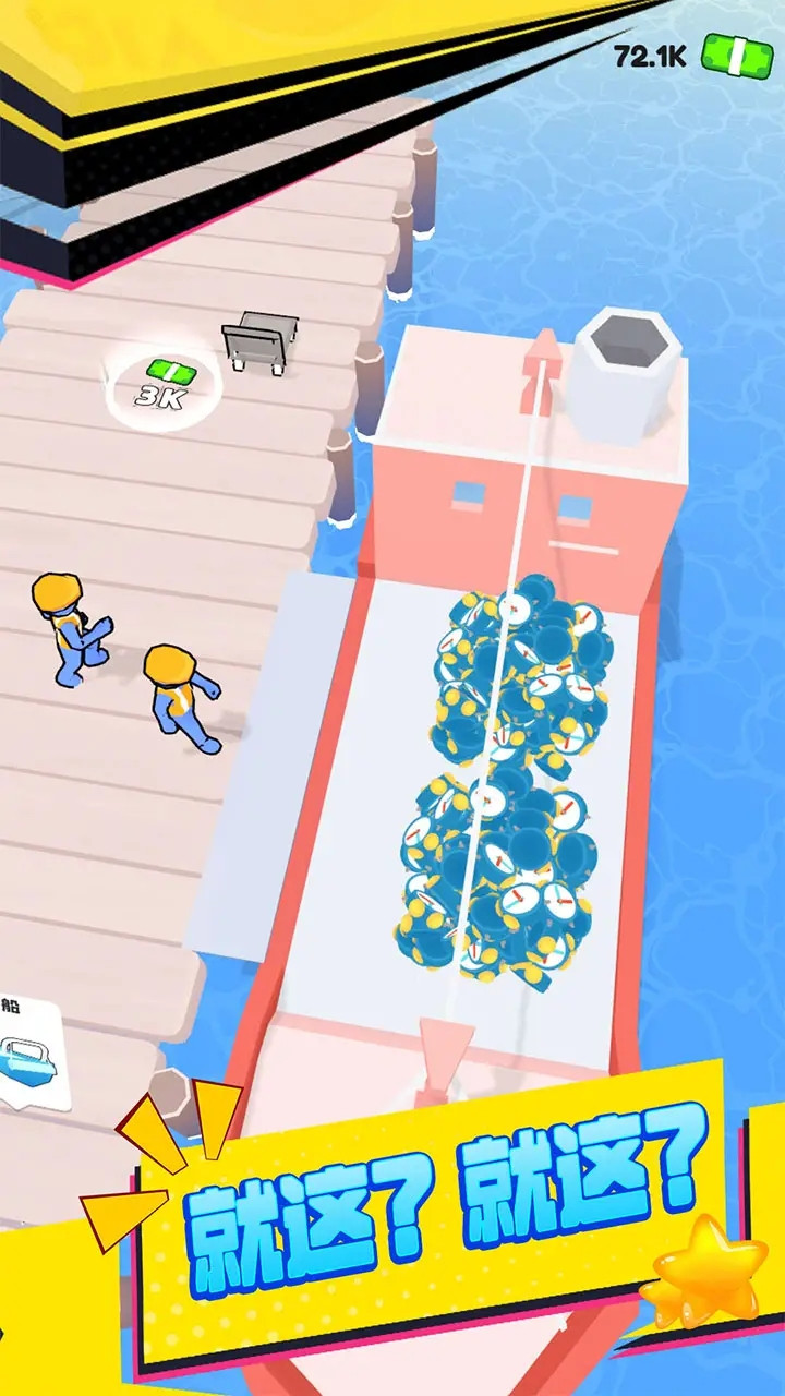 4、游戏招募的小人可以帮助玩家搬运渔获,这样就能源源不断的提供很多资金。