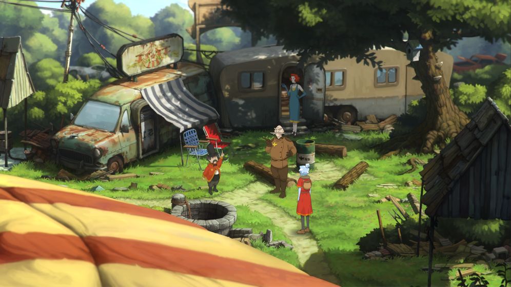 传统2D手绘动画人物和环境,影射到三维曲面空间以增加场景深度。