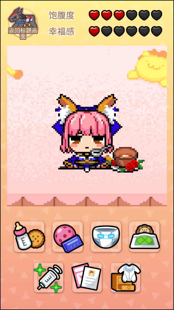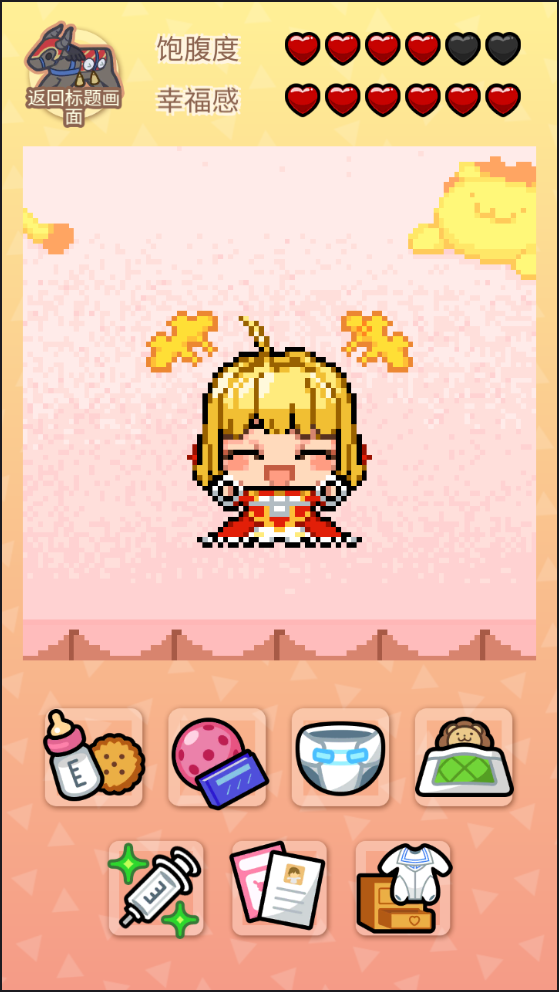 玩家照顾小小的master,和她玩耍时,可以培育她的数值;