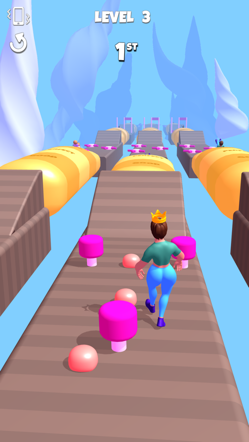 玩家控制角色在关卡中不停的前进,玩家需要不断的收集地面上面的道具,这个道具能够将角色的屁垫增大,关卡的难度越大玩家的闯关就越难,快点下载游戏吧!