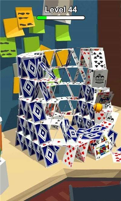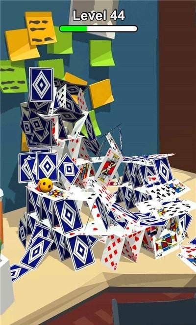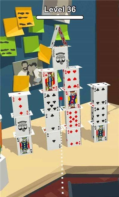 一款休闲游戏,在关卡中有很多纸牌组成的纸牌墙,玩家的任务就是击倒这些纸牌墙,但是只有找到纸牌墙的某一个点就能够快速的将纸牌墙击倒完成任务,快点下载游戏来闯关吧!