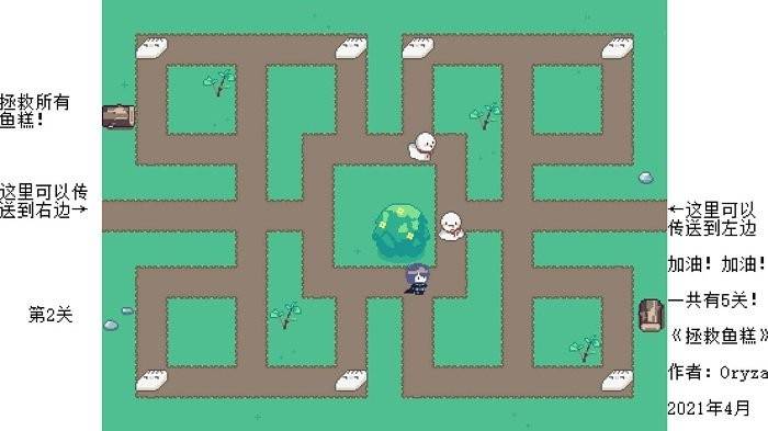 4、游戏每一关鱼糕的位置都是不同的,控制角色在不同的关卡中移动完成收集任务