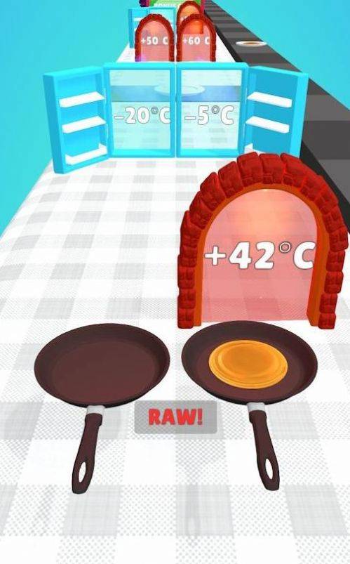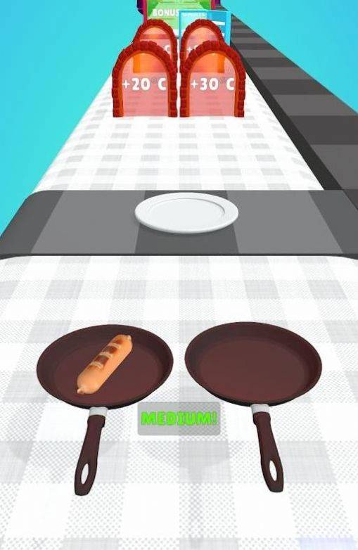 4、游戏平底锅在道路上不断的前进,滑动就能移动食物的位置通过很多门