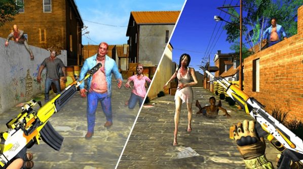 2、游戏可以在不同的地方拿着武器和超多僵尸射击战斗,全部消灭才能得到奖励。