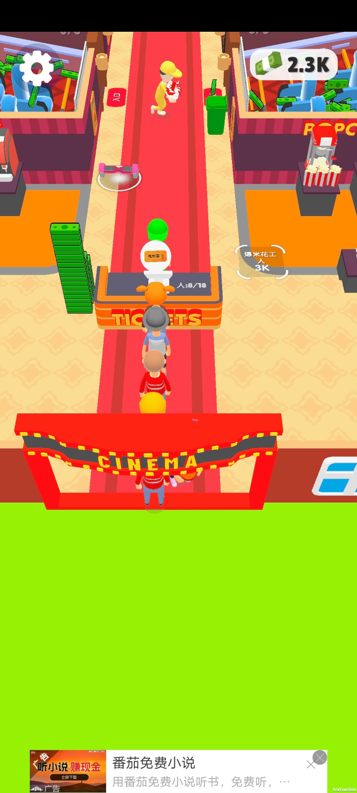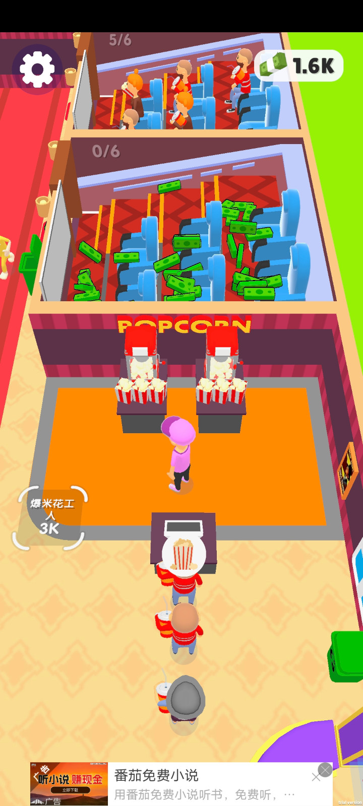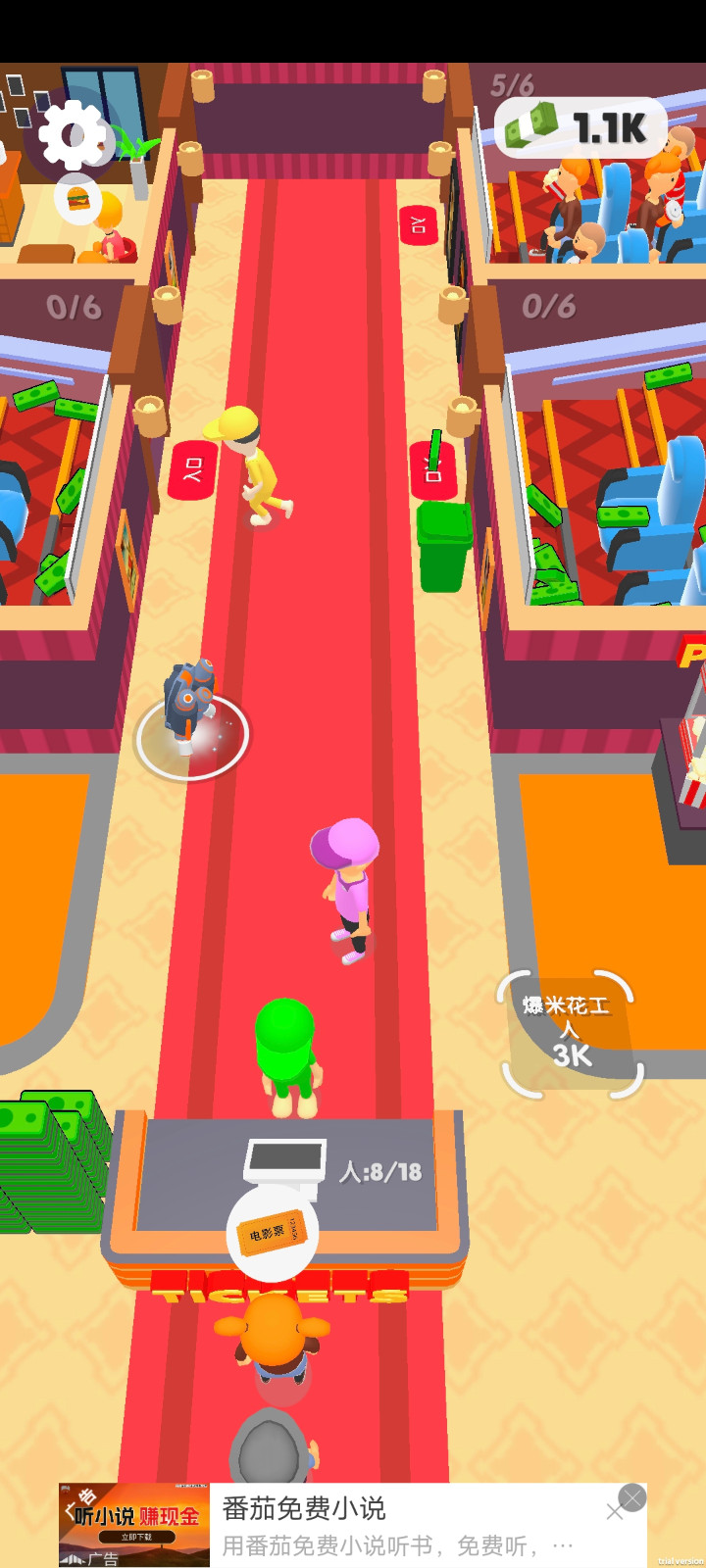 控制小人整个电影院不停的移动能够完成很多的任务,刚开始没有员工的时候自己扮演了很多的职业,售票员,销售员,清洁工等等玩家都要扮演让电影院可以继续经营下去,快点下载游戏吧!