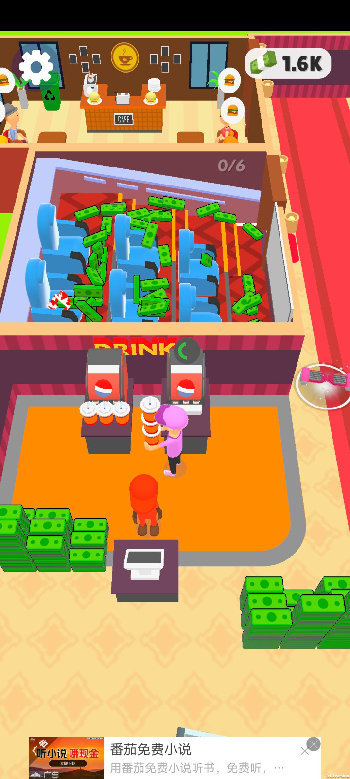 4、游戏想要出售更多的门票就需要不断的打扫,有很多的资金在场景需要玩家收集。