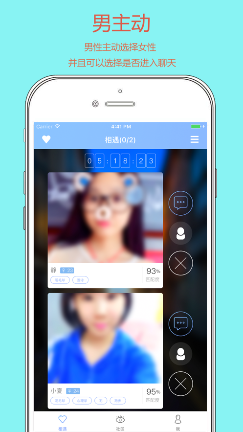 在《TA》里,同时只能跟配对的一位异性聊天,这种感觉你绝对没有体验过!当只能跟一个人聊天时,你们的距离就拉近了*^_^*