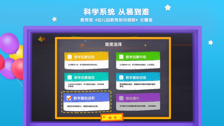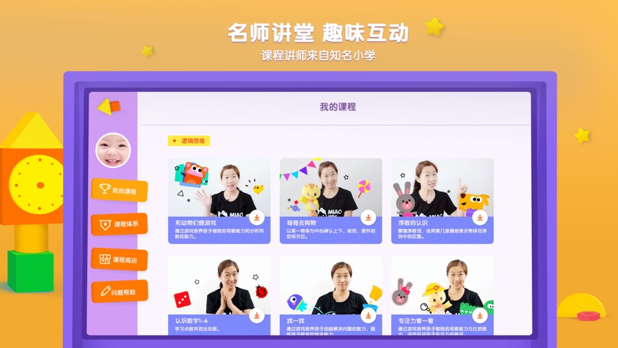 优学猫数学体验版APP中涉及的数学基础点、3000+题目练习,依据幼儿园大纲改编;按分龄、分类分配知识要领和难易程度进行编排;同时,按照孩子成长阶段划分,让孩子将“优学猫数学体验版”中的学习运用回实际应用。