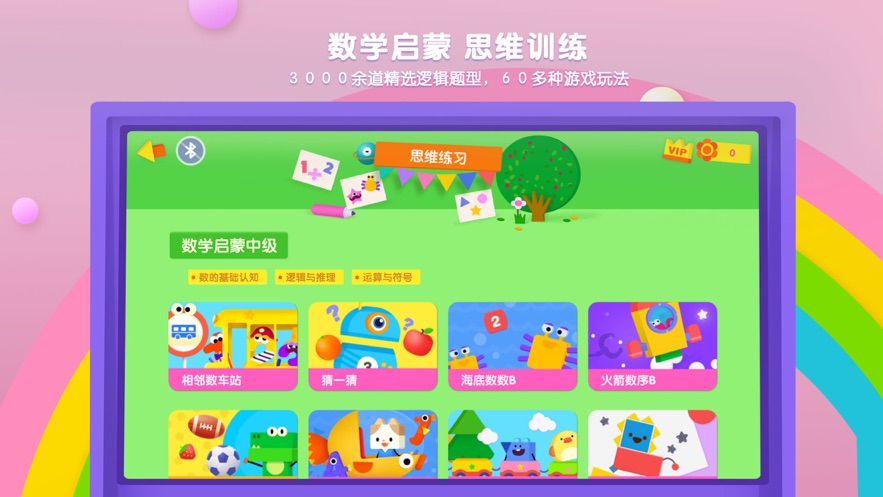 思维练习: 包含五大模块,3000道以上游戏题,让2-8岁更容易在所出年龄段吸收数学与逻辑的知识要领。