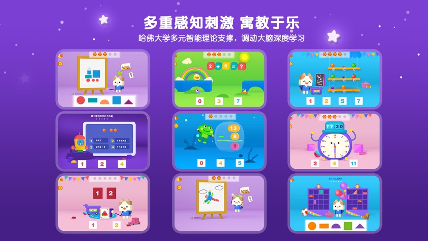 利用魔力块、百变卡、奇思板,并结合趣味的交互动画情节,将抽象 的数学学习过程变得不再枯燥。
