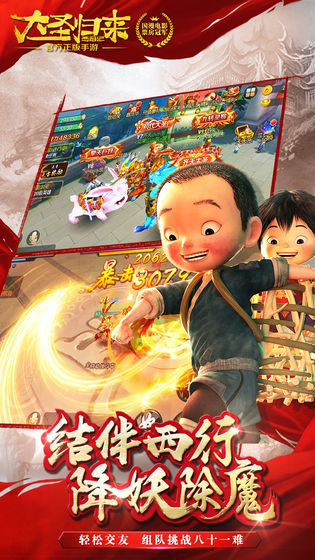 “二次元男神”汪东城倾情代言,化身狂野大圣,与玩家并肩作战斩妖除魔。全cg过场动画,电影原班人马配音,与大东一起下载大圣归来手游探寻《大圣归来2》的神秘剧情,开启全新的西游篇章!