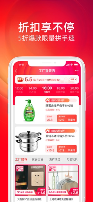 折扣享不停,5折爆款限量拼手速。