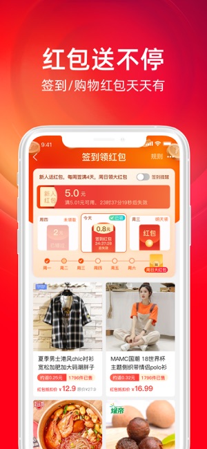 红包送不停,签到/购物红包天天有。