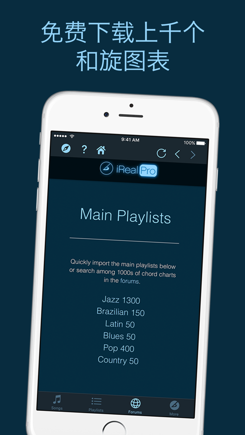 通过电子邮件和论坛与其他iReal Pro用户共享个人图表或整个播放列表