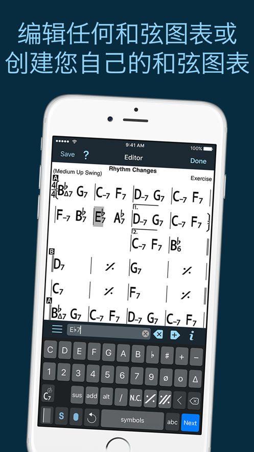 《iReal Pro》是一款非常强大的手机模拟谱曲软件,用于帮助各级音乐家掌握艺术,支持在手机上编辑和弦,含有丰富的和弦图可供选择,支持在线进行练习,欢迎有需要的朋友到798手游网下载使用!