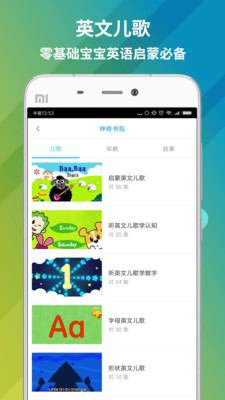 包括童谣朗诵和诗词朗诵,提供跟读功能,提升孩子的语感和国学文化积淀。