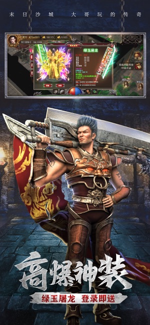 高爆神装,绿玉屠龙,登录即送。