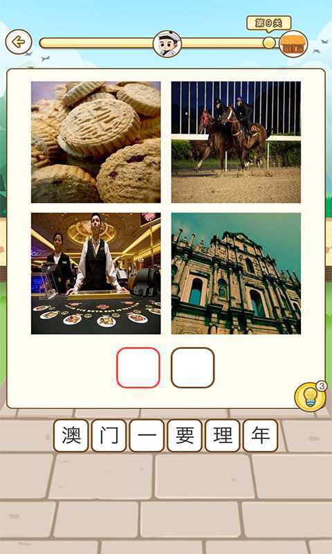 游戏中玩家只有猜到前面的正确答案才能进入下一题全部正确才能进入下一关
