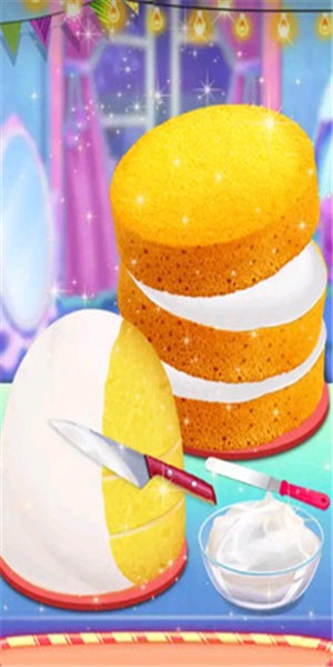 游戏的背景是在五彩的蛋糕房中,玩家能够在游戏中制作不同形状大小的蛋糕