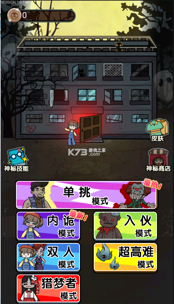 猎梦宿舍是款冒险闯关游戏,玩家每一次都和不同的小伙伴来都宿舍中开始冒险,在猛鬼出现之前玩家需要选择房间当做自己的房间,在房间中可以购买很多的武器帮助自己防守,快点下载游戏吧!